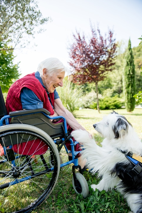Senior Woman Playing With Pet Dog Outdoors